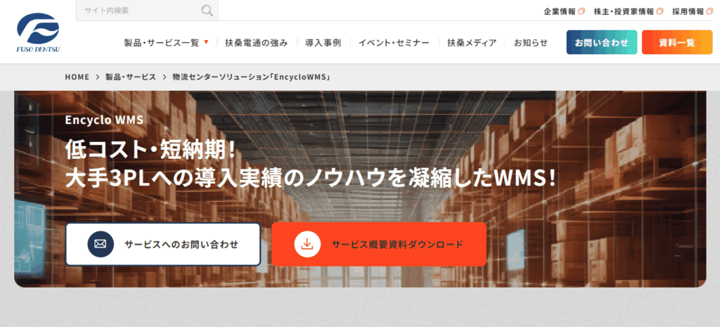 EncycloWMSを導入後、業務のデジタル化によってデータの一元管理ができ、作業効率の向上を実感しております。また、倉庫内の労務管理、作業工程管理から入荷、検品、ピッキング、梱包、出荷まで一連の庫内作業の効率化が実現でき、経営層から高評価をいただきました。https://www.fusodentsu.co.jp/